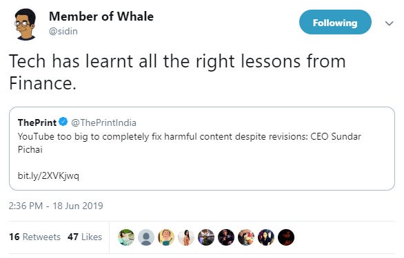 There is no I in YouTube: Meanwhile, over at Google - YouTube has been pulled up for not doing enough to prevent harmful content and Sundar Pichai admitted that it’s too big to fix.